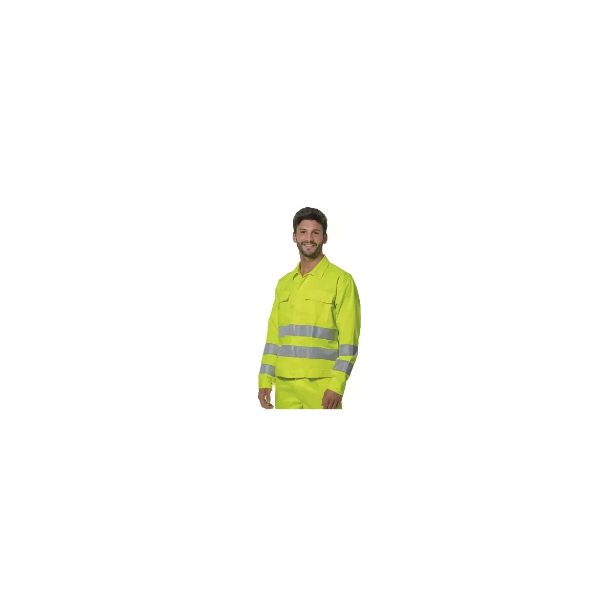 Giubbino alta visibilità con collo a camicia, chiusura centrale a bottoni.
