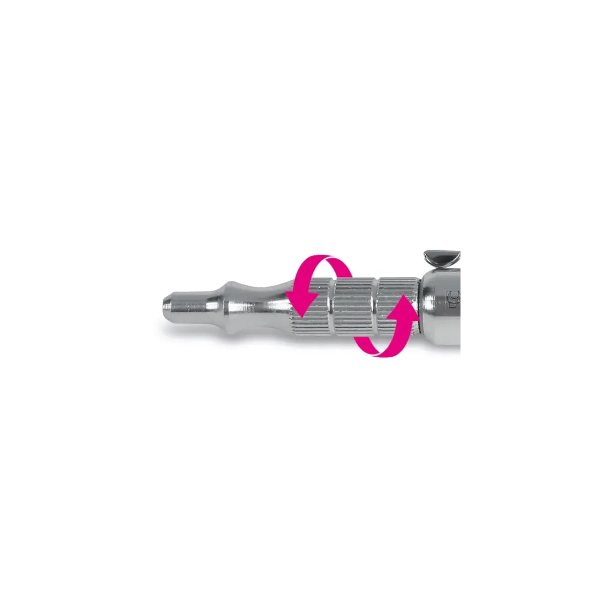 Ruotando la testa zigrinata è possibile aumentare o diminuire il getto d'aria a seconda delle esigenz