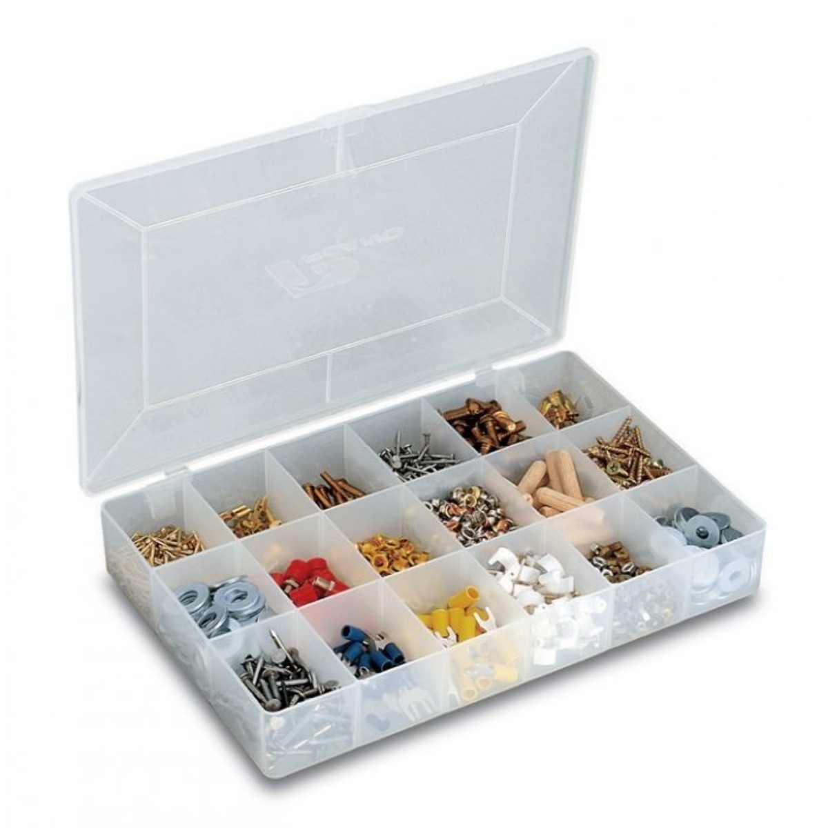 Il Portaminuterie PLANO 3700 è uno contenitore professionale/hobbistico realizzato in polipropilene trasparente, suddiviso da 4 a 24 scomparti modulabili.