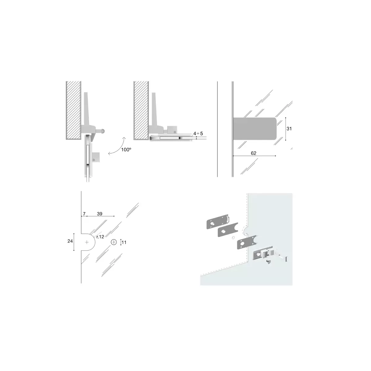 CERNIERA PER CRISTALLO A FILO CONFALONIERI ART.1024 NICHEL SATINATA