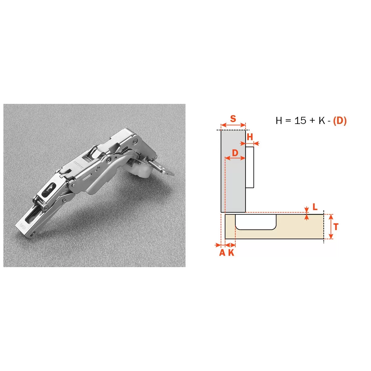 CERNIERA SALICE SILENTIA+ SERIE 200 APPLICAZIONE STANDARD APERTURA 155° AMMORTIZZATA