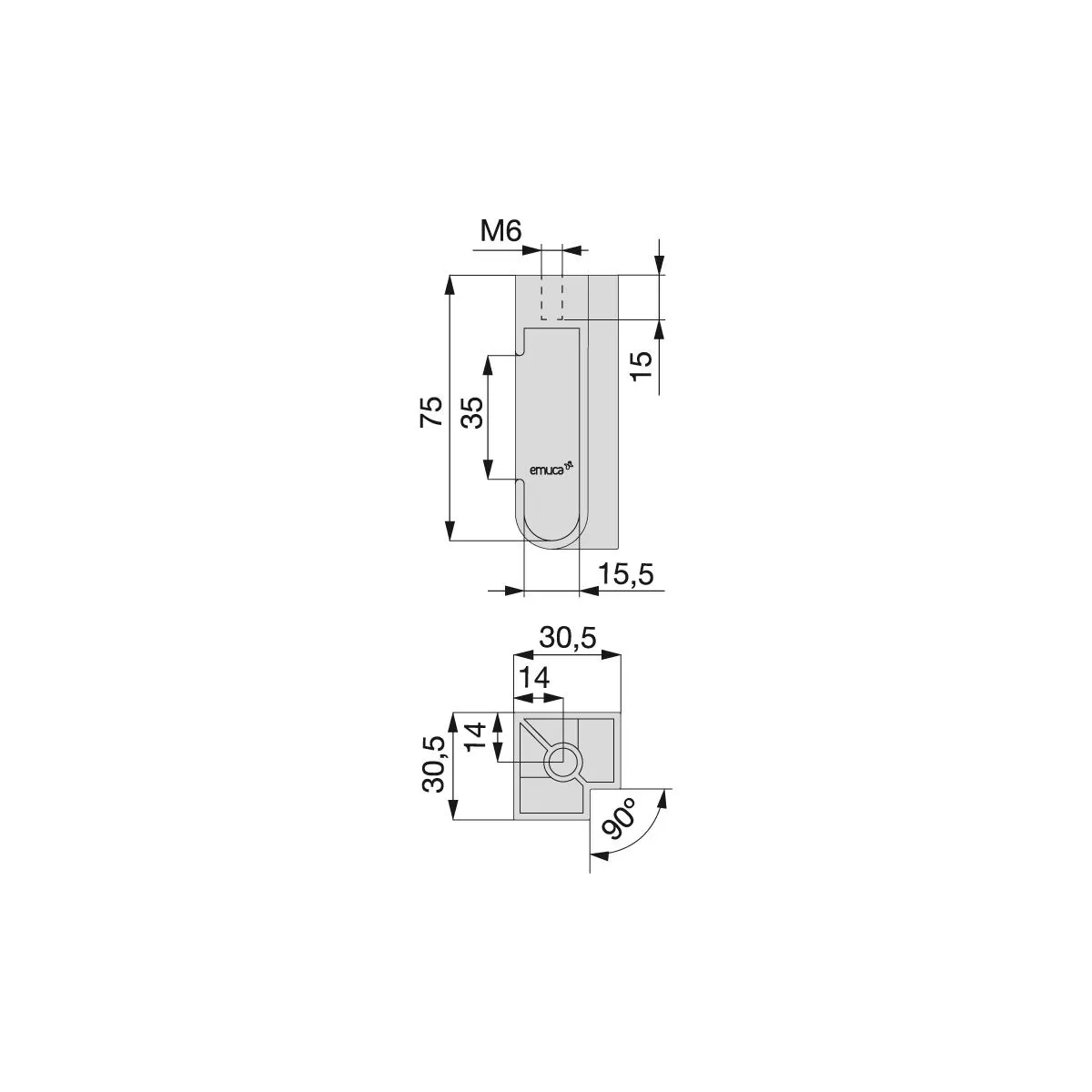Emuca REGGITUBO ANGOLARE SILK 2 PER TUBO ARMADIO GRIGIO METALLIZZATO