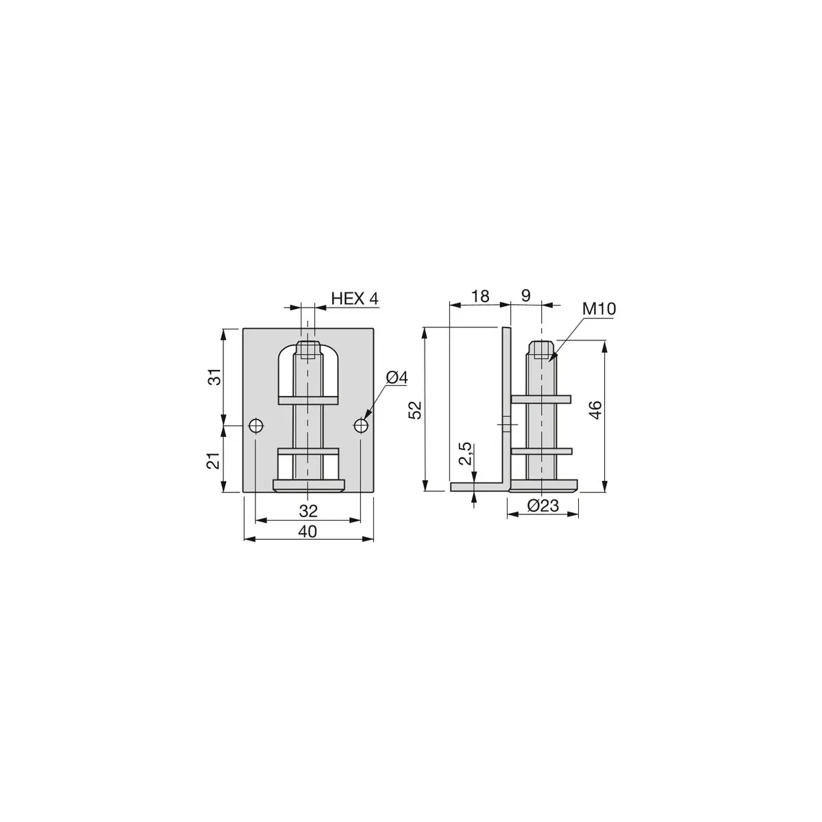 Regolabile circolare M10 con tappo e staffa per mobili, diametro 23 mm, Acciaio e Tecnoplastica, Zincato bianco