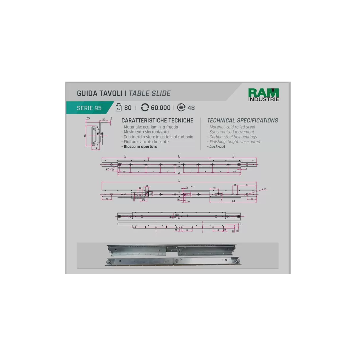 Ram Industrie GUIDA PER TAVOLI SERIE 95 LUNGHEZZA 800 MM PORTATA 80 KG - Art. 95800