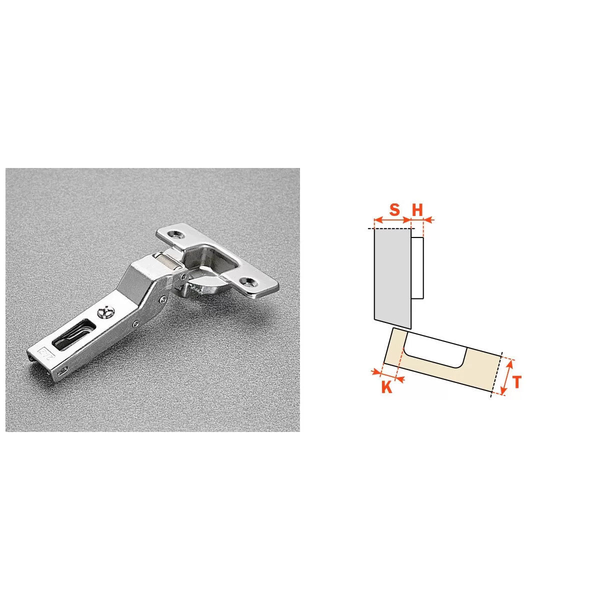 Cerniere SALICE per ante in legno con montaggio ad angolo positivo, 15 gradi, apertura 94 gradi