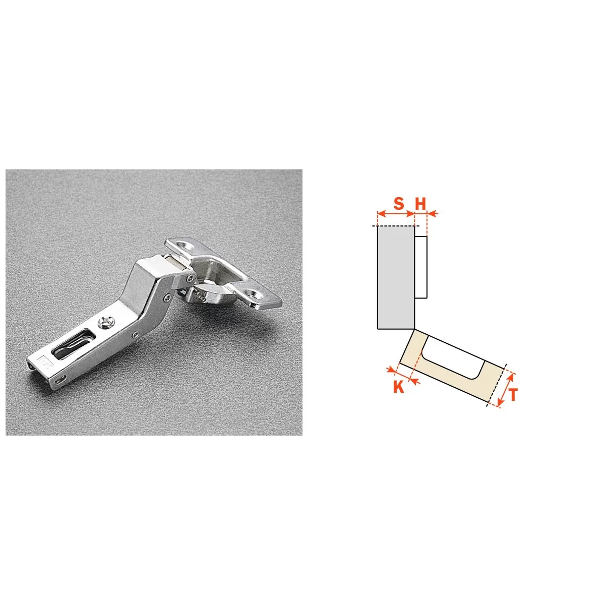 Cerniere Salice per ante in legno con montaggio ad angolo positivo, apertura 94°,