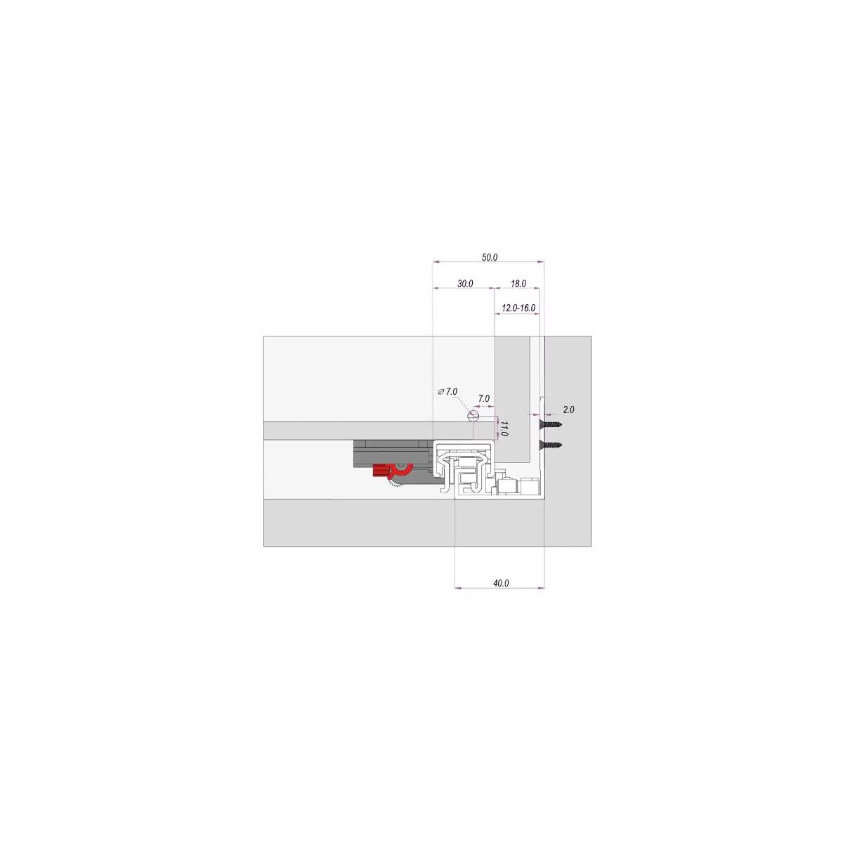 Coppia Guide invisibili per cassetti ad estrazione totale, profilo largo, chiusura ammortizzata.