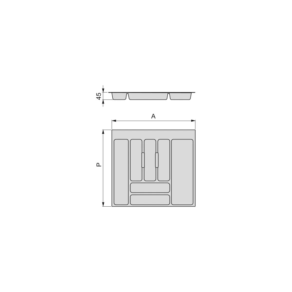 EMUCA PORTAPOSATE PER CASSETTO DI CUCINA 37,2x47,3 CM IN PLASTICA COLORE GRIGIO - Art. 8324721