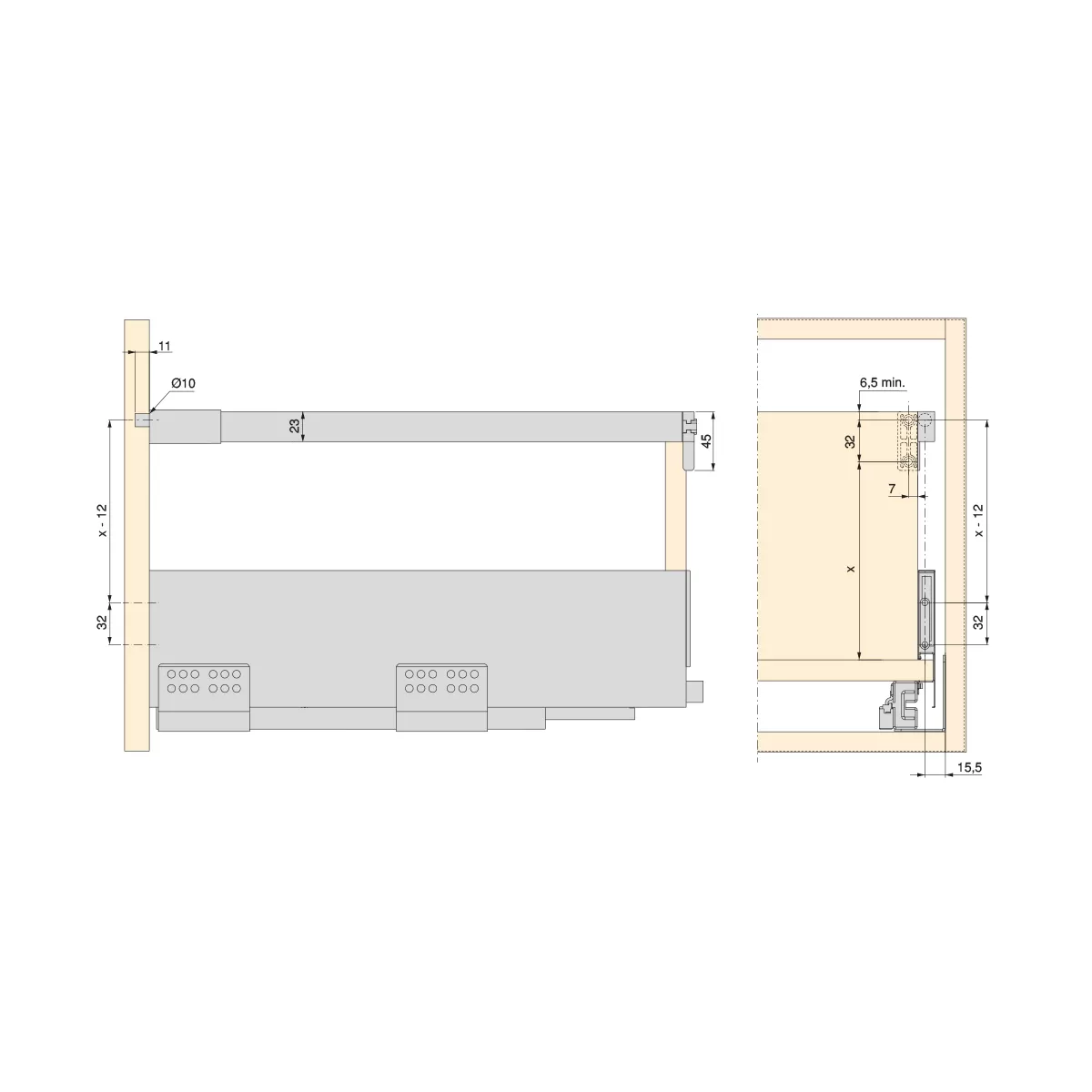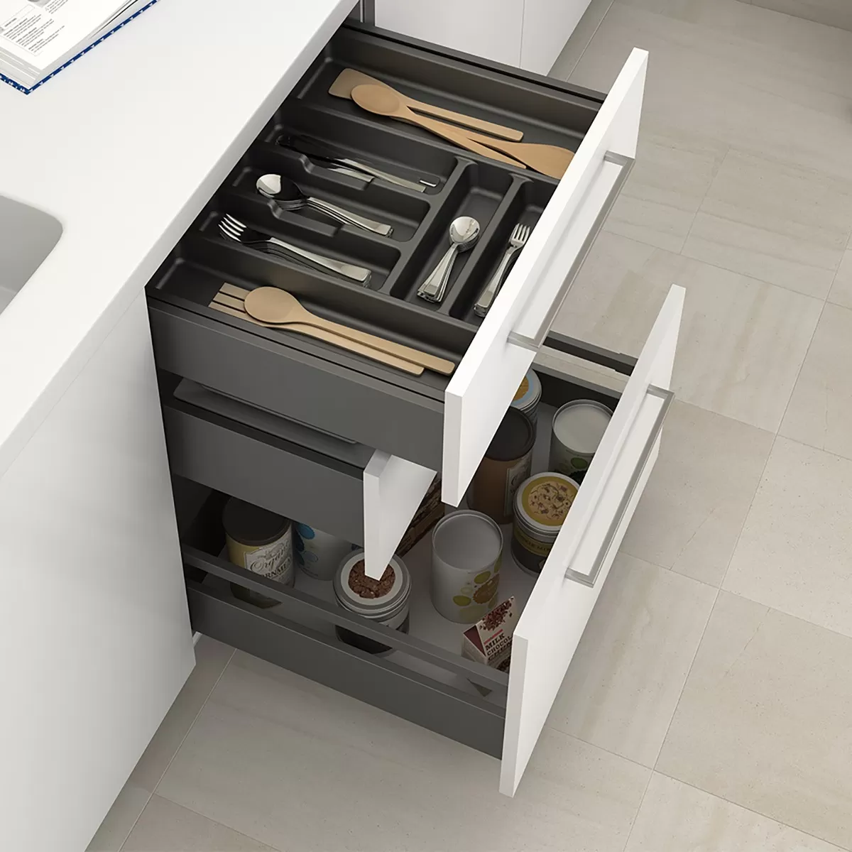 Set di astine per cassetti della cucina e del bagno , progettate per il montaggio di cassetti grandi e profondi , tipo portapentole con alta capacità di stoccaggio.