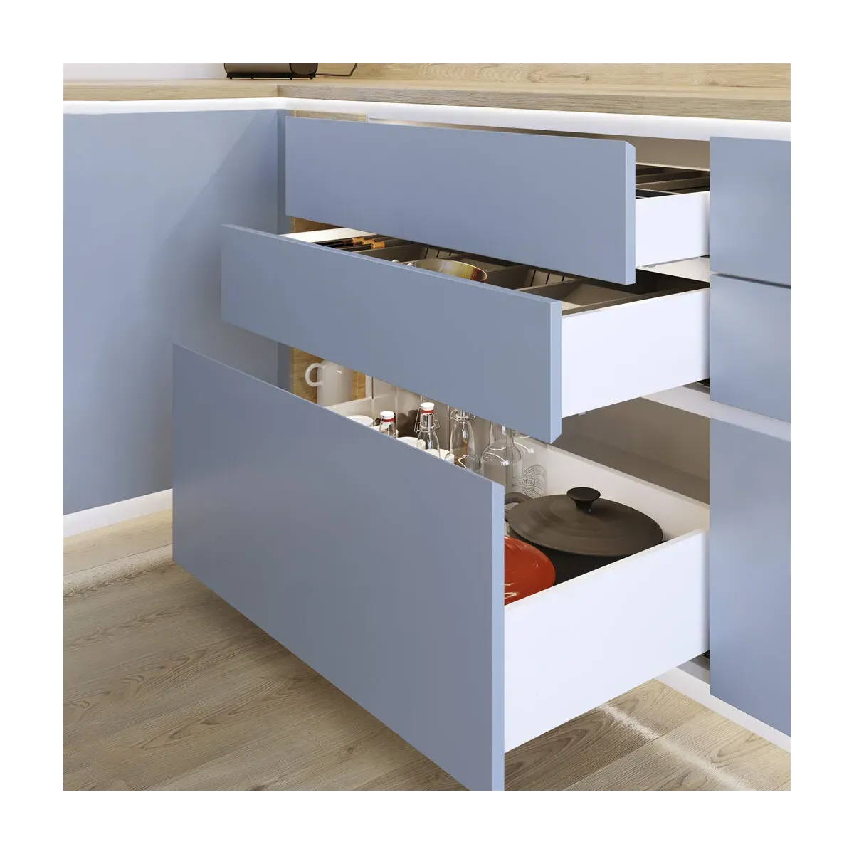 Cassetto in metallo dal design pulito e minimalista, con guide sincronizzate ad estrazione totale e chiusura ammortizzata. Disponibile in 6 profondità e con capacità di carico fino a 30 kg. Ideale per ogni tipo di progetto d’arredo.