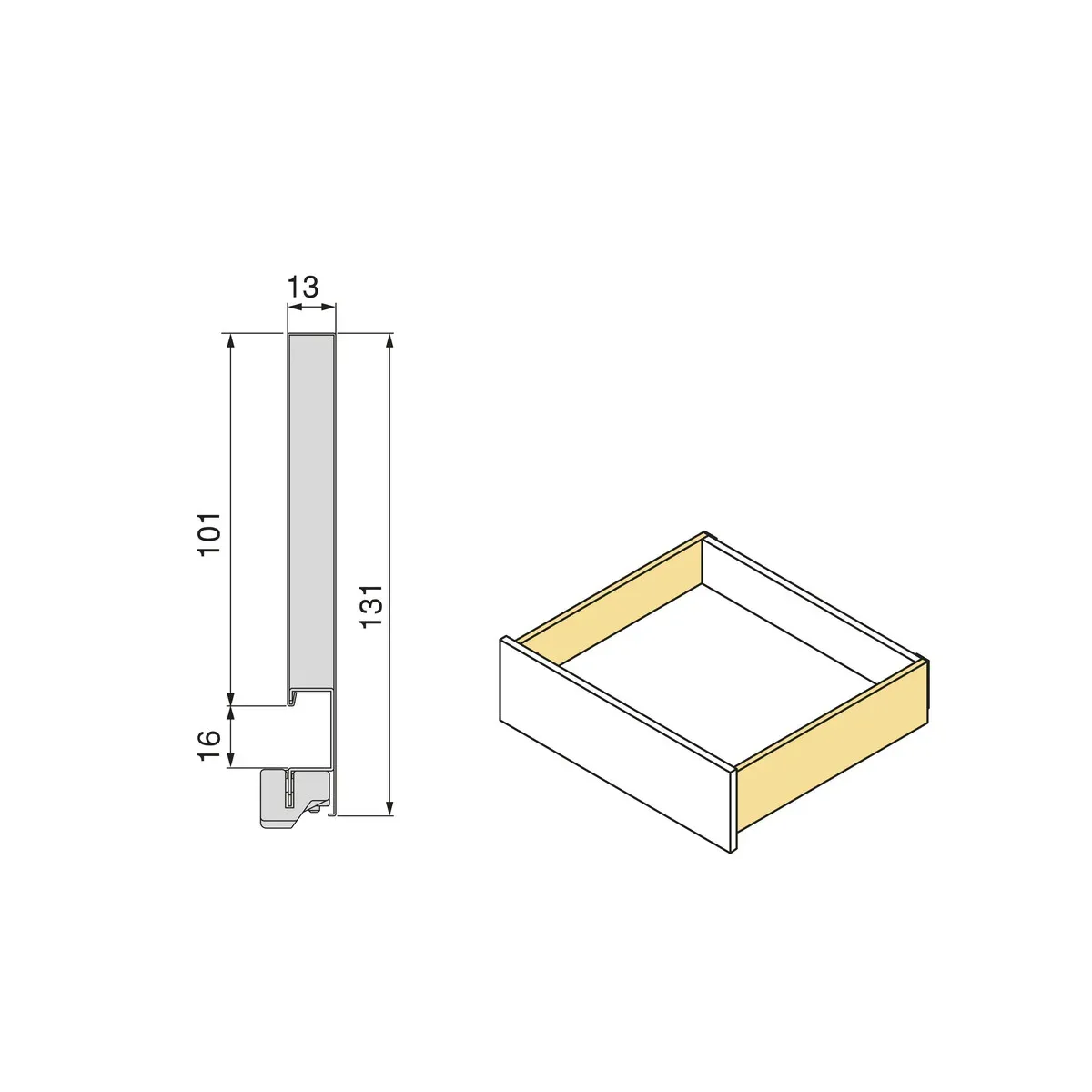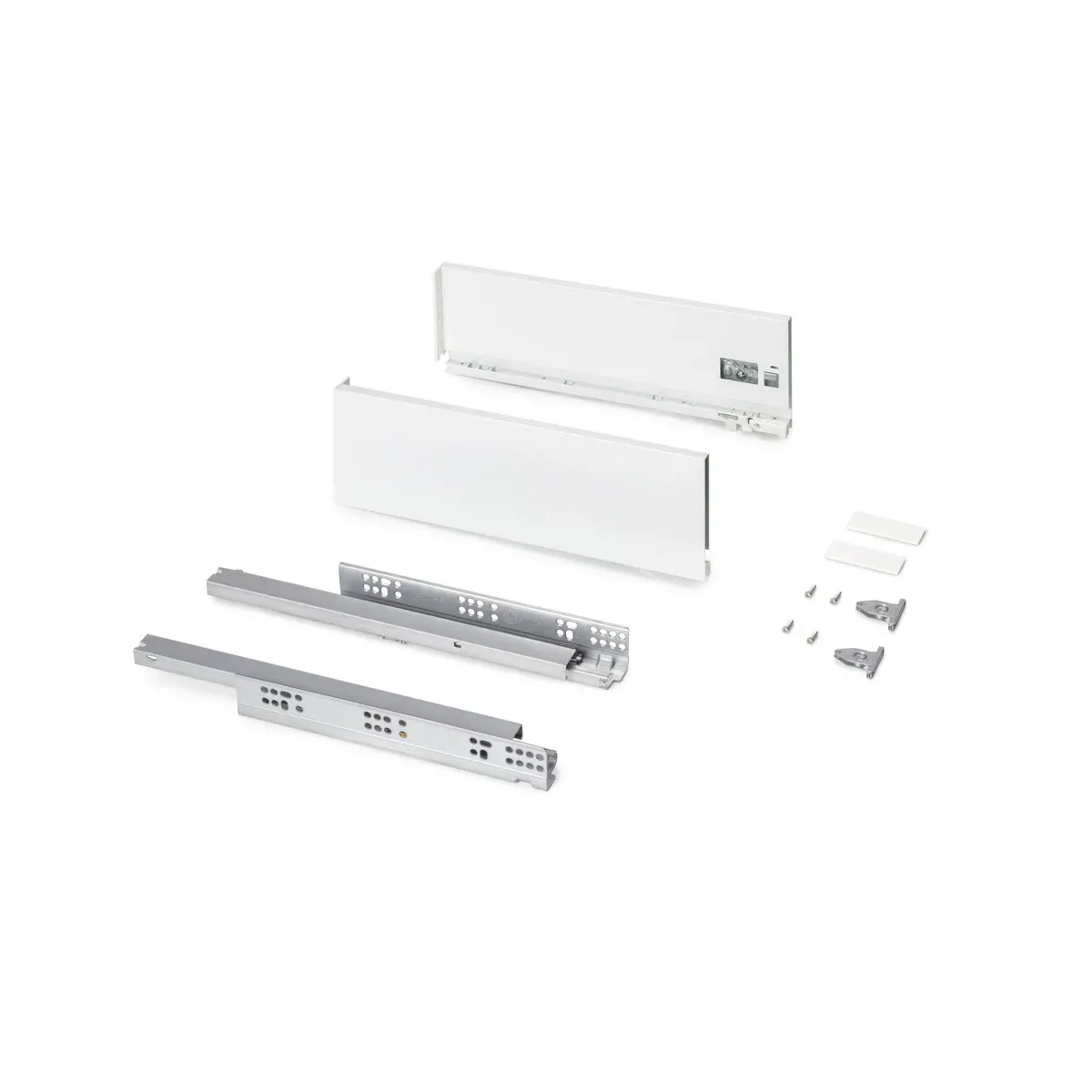 - Kit di accessori necessari per il montaggio del cassetto esterno di altezza 131 mm e profondità di 400 mm, a eccezione di frontalino, retro e fondo.