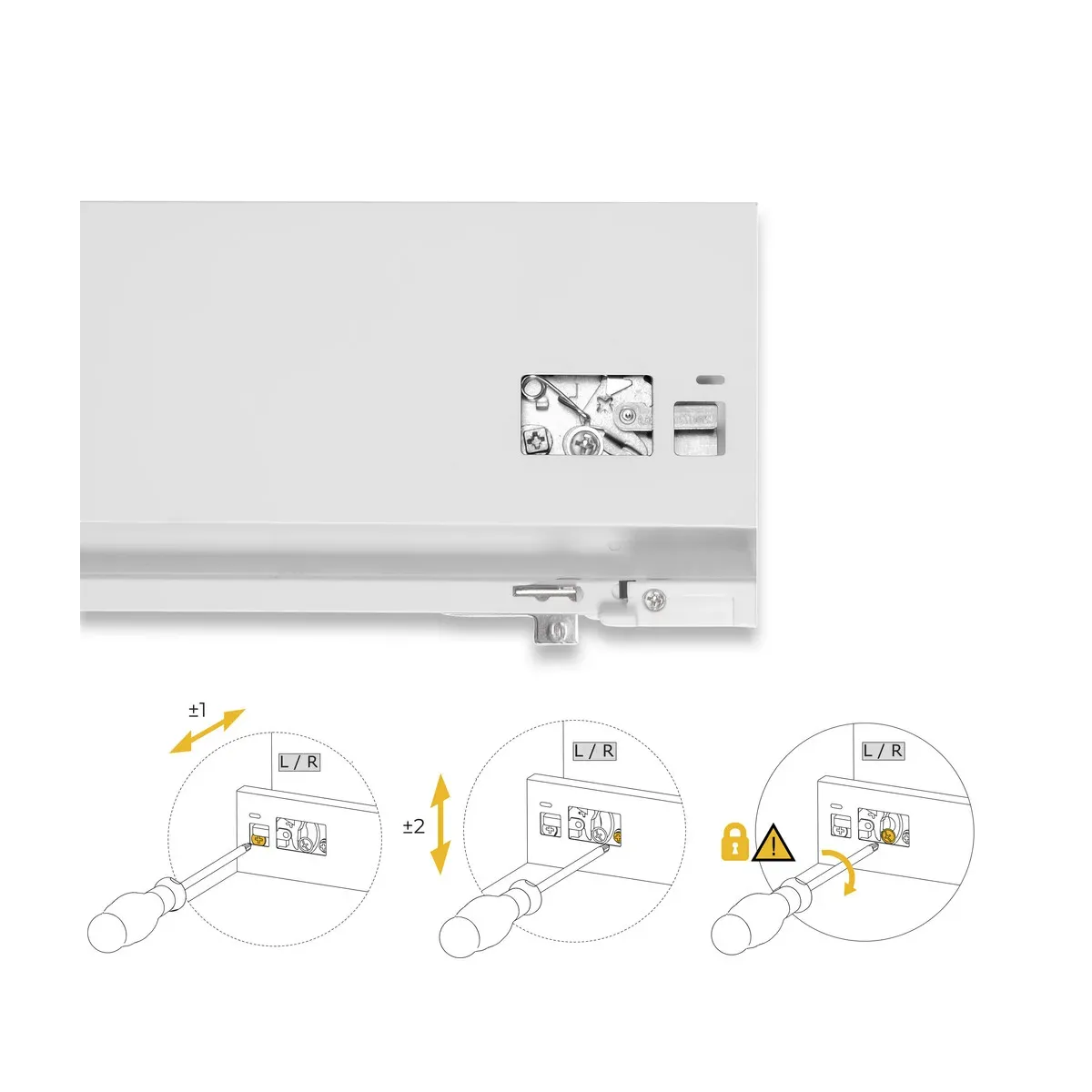 I distributori e grossisti trovano in questo kit una proposta completa e pronta alla vendita. Include tutti i componenti (guide, attacchi, coprifrontali, ecc.) con regolazione verticale e orizzontale del frontale, ideale per falegnami e rivenditori. La sua alta rotazione lo rende un prodotto redditizio e facile da gestire.