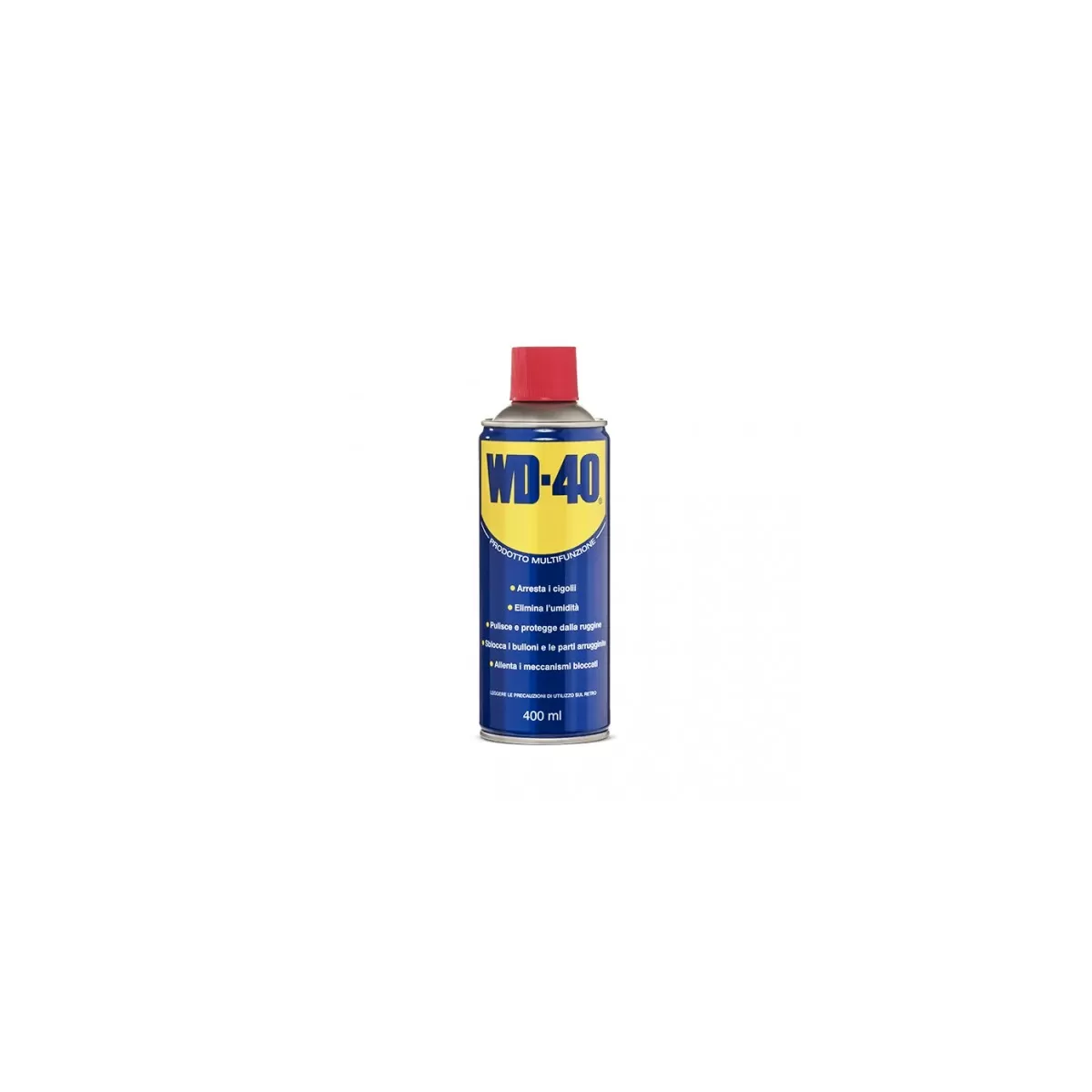 Il prodotto WD-40 lubrifica, elimina cigolii, sblocca, elimina l’umidità, previene la ruggine e protegge tutte le superfici metalliche.