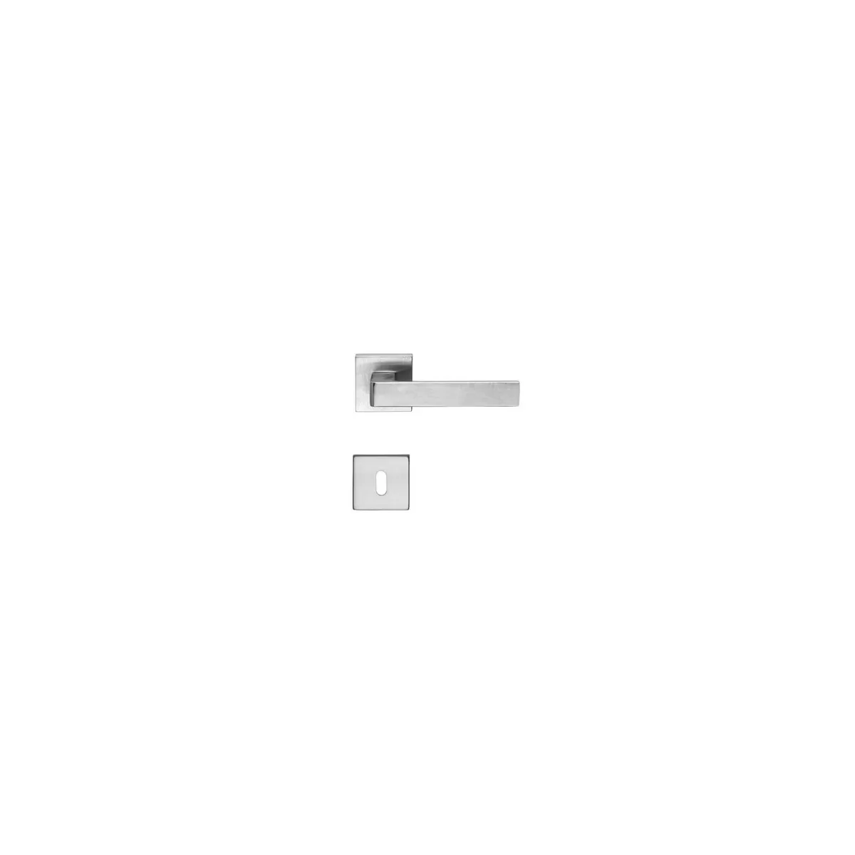 Coppia maniglia per porte interne quadrata cromo satinata con rosetta 45x45 mm,in zama, modello capri
