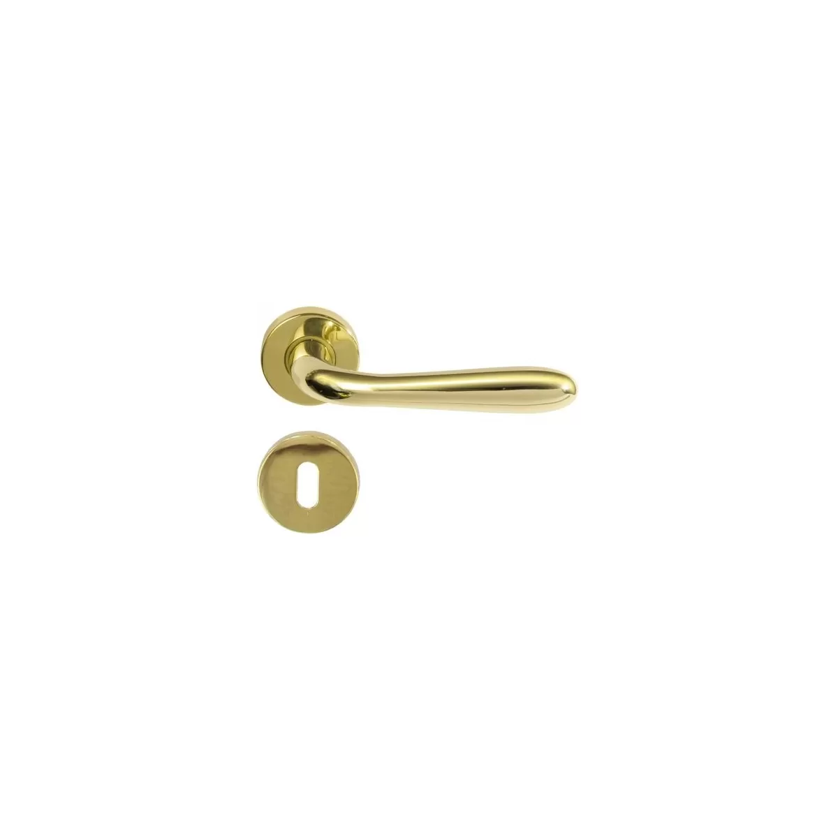 Coppia maniglia per porte interne oro lucido, in alluminio, modello agnone, con rosetta diametro 45 mm.