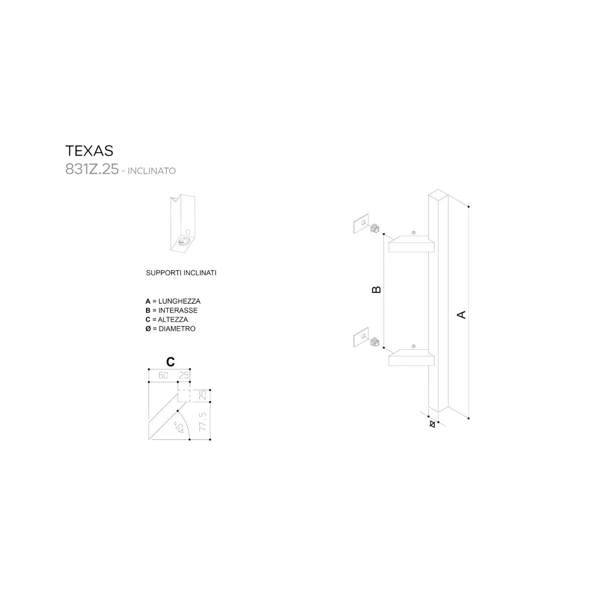 Maniglione quadrato inclinato fimet TEXAS 831Z.25.500.300.60 finitura inox satinato.
