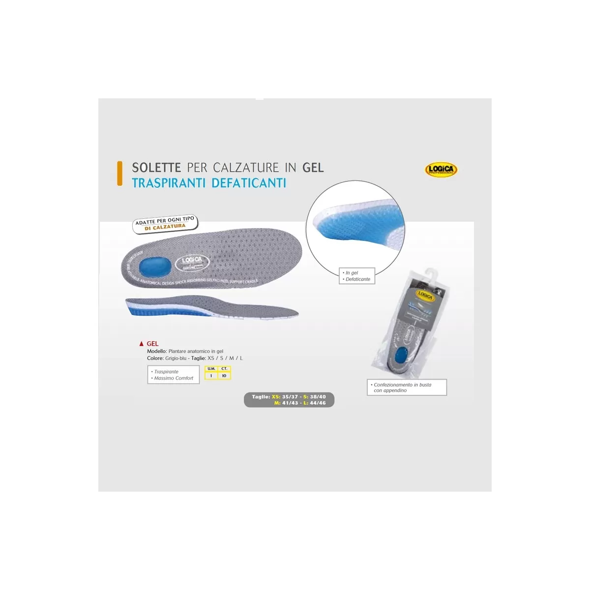 PLANTARE SOLETTA ANATOMICA IN GEL AZZURRO LOGICA TAGLIA M - Art. GEL-M