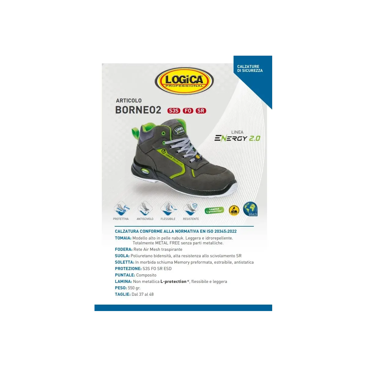 LOGICA SCARPE ANTINFORTUNISTICHE ALTE GRIGIE IN PELLE NABUK IDROREPELLENTE S3S FO SR ESD NUMERO 44