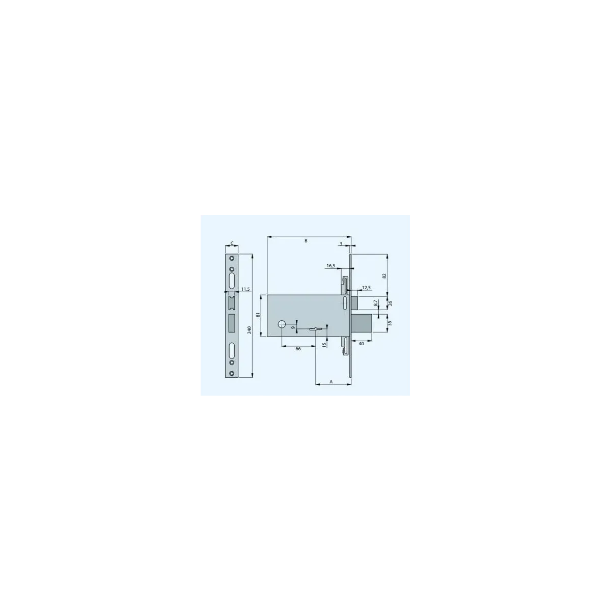 SERRATURA FEB DOPPIA MAPPA PER FASCE DA INFILARE ENTRATA 70 MM INTERASSE MANIGLIA 66 MM FRONTALINO 28 MM