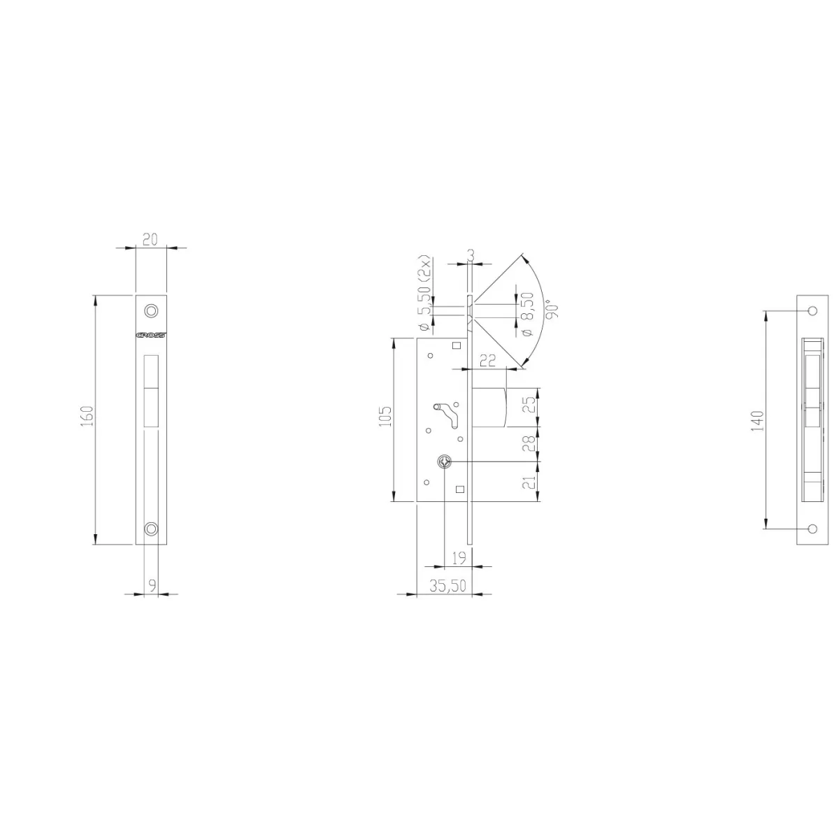 Serratura Moia, chiave a spillo, montante basculante, serratura per serramenti, serratura alluminio, serratura compatta, serratura porte, serratura sicurezza.