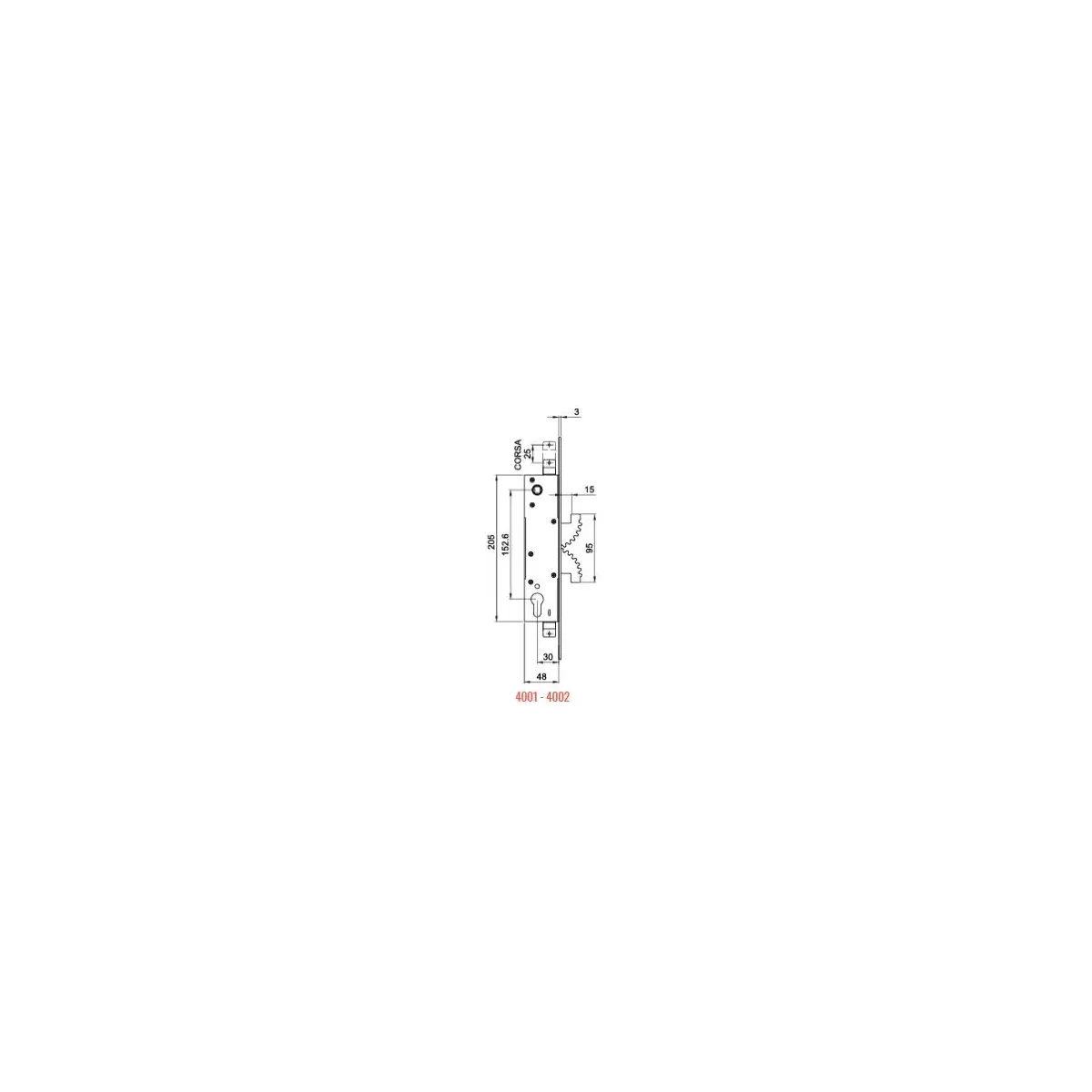 • Azionamento dei catenacci con quadro maniglia e blocco del quadro maniglia con cilindro (Art. 4001 – 4002). Azionamento e blocco con cilindro (Art. 4003 – 4004).