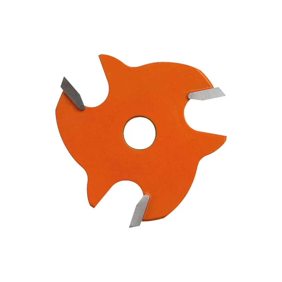 FRESE A DISCO PER SCANALATURE LATERALIQueste frese a tre taglienti in micrograna di carburo di tungsteno, ricoperte di resina fluorocarbonica PTFE, sono dotate di un particolare design studiato per evitare il contraccolpo.