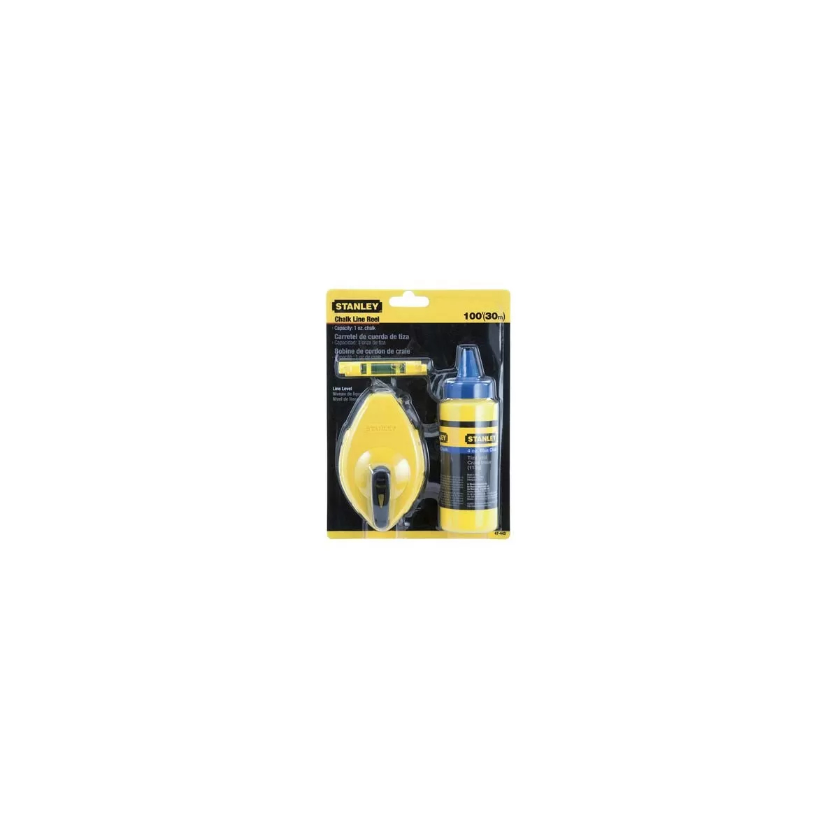 TRACCIATORE 30 METRI STANLEY COMPLETO DI FLACONE CON POLVERE BLU 113 GRAMMI + LIVELLA A FILO 0-47-443