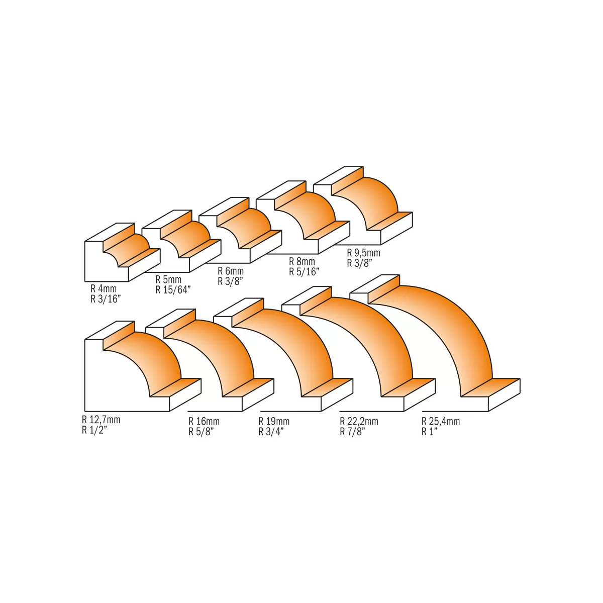 FRESE CON RAGGIO DA 25,4MM A 38,1MM DA UTILIZZARE SOLO SU TAVOLI DA LAVORO.