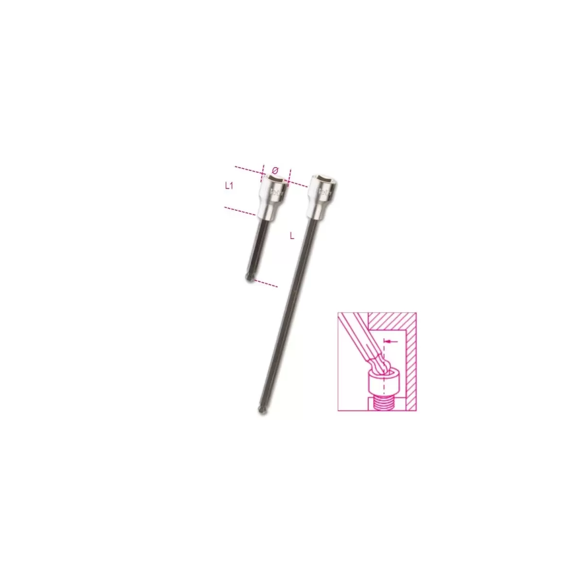 La chiave a bussola maschio esagonale Beta 920BP 6XL è progettata per garantire precisione e versatilità. Dotata di attacco quadro femmina da 1/2″, ha un inserto esagonale con estremità sferica, che consente l'utilizzo anche in posizione inclinata rispetto all'asse della vite, facilitando l'accesso in spazi ristretti o difficili.